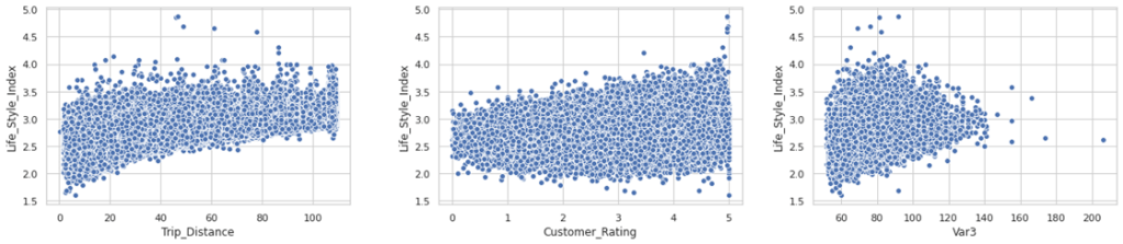 From the 3 scatter plots, we can notice that most of the values of Life_style_index is distributed between 2 to 3.5