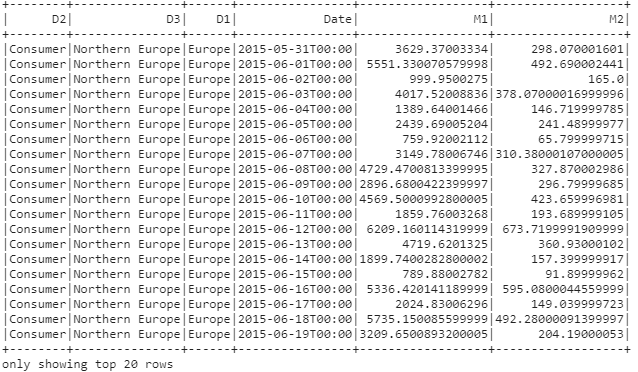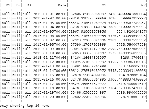 dataframe_spark = dataframe_spark.select(["D1","D2","D3", "Date", "M1", "M2"])\