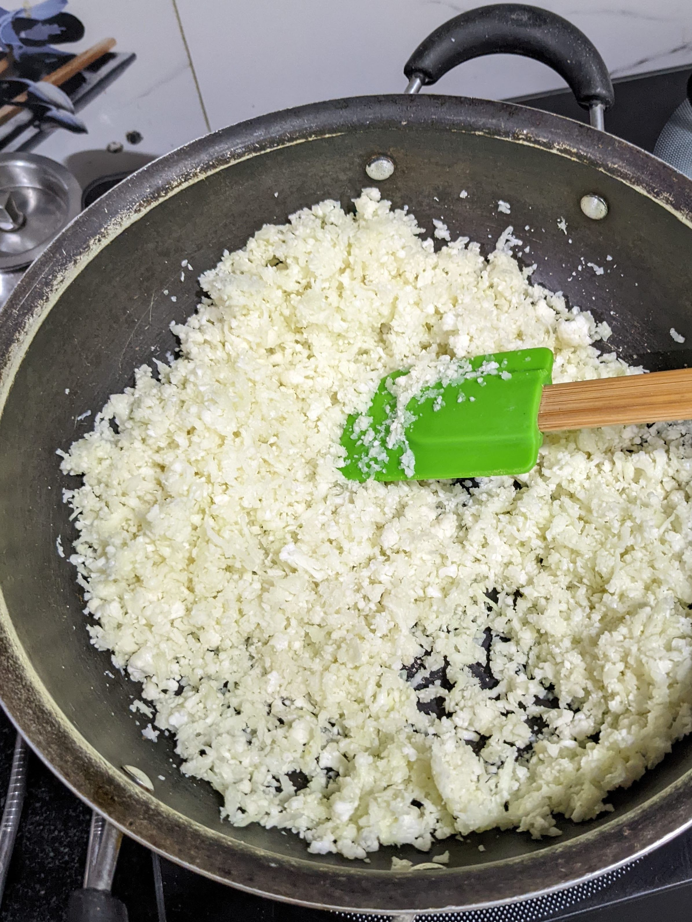 Wash Gobi and make small pieces of it. Finely grate gobi and heat it on kadai. Make sure to keep stirring grated gobi to remove moisture.