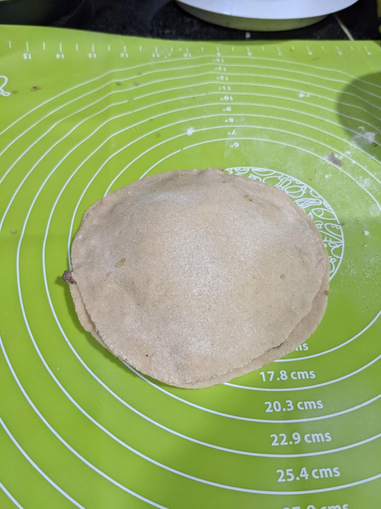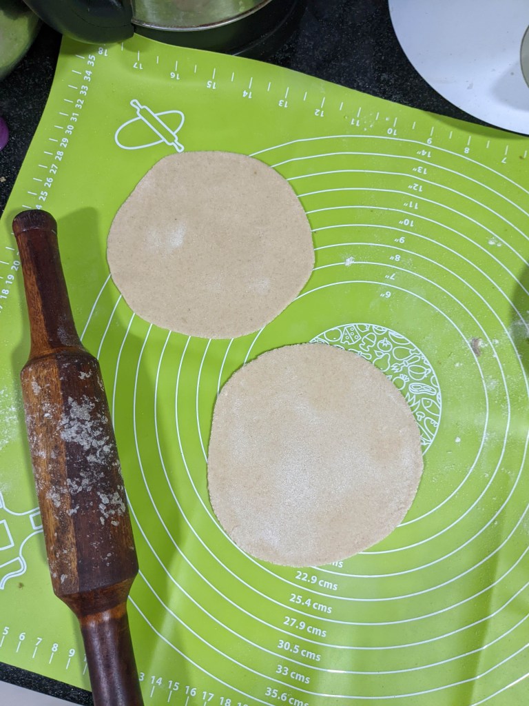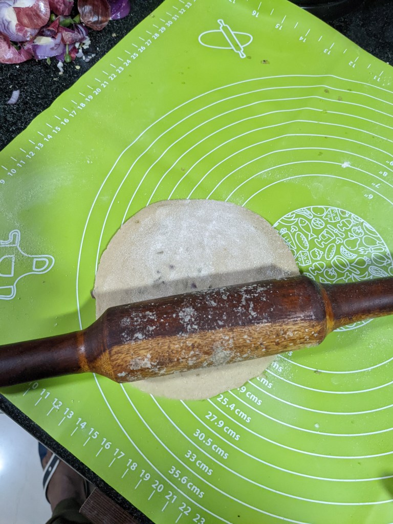 Make Two atta balls of 6 inch with minimal use of atta dust.